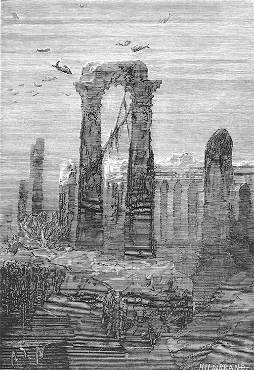 В ночь с 16 на 17 февраля мы вступили во второй бассейн Средиземного моря, наибольшая глубина которого достигает трех тысяч метров. «Наутилус», повинуясь рулю глубины, скользя наклонными плоскостями, опустился в недра морских вод. Здесь, как бы взамен чудес естественных, я увидел следы человеческих бедствий.