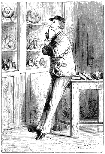 По прошествии часа мои камни были размещены по порядку. Я опустился в «утрехтское» кресло, запрокинул голову и свесил руки. Потом я закурил трубку, длинный изогнутый чубук которой был украшен фигуркой наяды, и забавлялся, наблюдая, как мало-помалу моя наяда, покрываясь копотью, превращалась в настоящую негритянку. Время от времени я прислушивался, не раздаются ли шаги на лестнице, но ничего не было слышно. Где же мог быть теперь дядя? Я представлял его себе бегущим по прекрасной аллее Альтонской улицы, на ходу он в неистовстве сбивает концом своей палки листья с деревьев, чертит какие-то знаки на стенах, отсекает головки чертополоха и нарушает покой сонных лебедей.