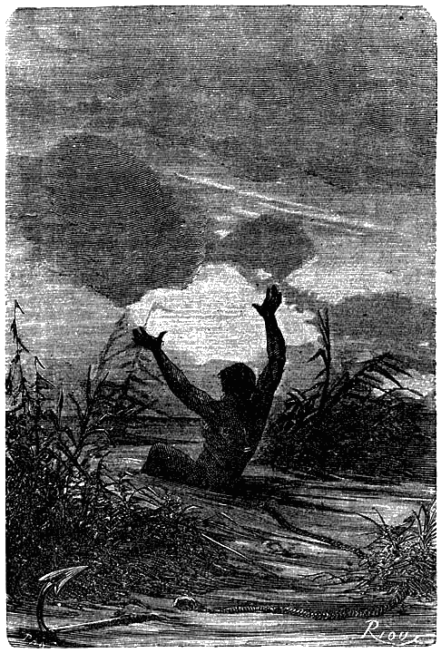 Впервые несчастный Джо пал духом. Ему казалось, что он погиб. Решив, что доктор улетел окончательно, бедняга уже не был в силах ни надеяться на что-либо, ни строить какиелибо планы. В каком-то безумном состоянии, с окровавленными ногами, с ноющим от боли телом, шел он целый день и часть ночи. Порой ему приходилось даже тащиться ползком. Он чувствовал, что силы вот-вот покинут его и останется одно: умереть. Бредя таким образом, он попал в болото, но не сразу это заметил, так как была уже ночь. Вдруг он свалился в вязкую грязь и, несмотря на все свои отчаянные усилия, почувствовал, что мало-помалу трясина засасывает его. Еще несколько минут – и он увяз по пояс.