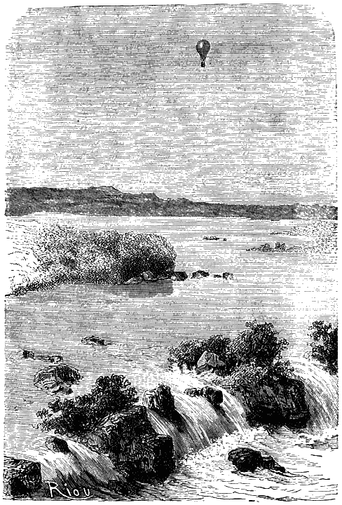 – Смотрите, друзья мои, смотрите! – вдруг закричал он. – Значит, то, что рассказывали арабы, верно! Они говорили о реке, которая вытекает из северной части озера Укереве. Теперь она перед вами! Мы летим над нею. Она несется почти с такой же быстротой, как и мы. И эта струйка воды, бегущая под нами, конечно, сольется с волнами Средиземного моря. Это Нил!
