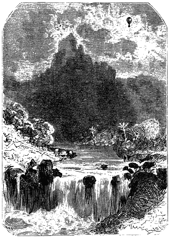 После полудня небо заволокло теплым туманом, поднимавшимся от земли. Сквозь него едва можно было различить, что делалось внизу. И вот доктор, боясь наткнуться на какую-нибудь вершину, решил сделать остановку в пять часов. Ночь прошла благополучно, без всяких приключений, но ввиду полнейшей темноты пришлось быть особенно настороже.