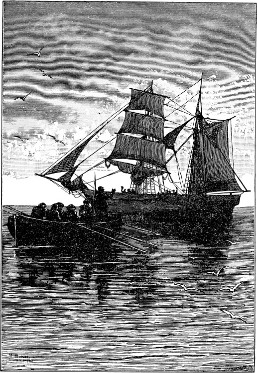 Одним прыжком очутился старый моряк на своем месте… Еще раз приподнял он шляпу в знак приветствия; затем раздалась команда: «Отваливай!» Лодка быстро отделилась от борта судна и полетела по неподвижной поверхности океана.