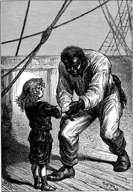– Браво, друзья мои! – весело ободрял негров молодой командир. – Ну, теперь очередь за грот-мачтой. Запомните это название: грот-мачта – вот эта, возле меня. А та, первая, называется бизань-мачта, а вот та, третья, наклоняется ближе к носу, называется бушприт. Запомните эти названия?