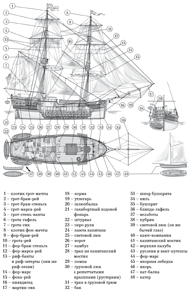 Как уже было сказано, экипаж «Пилигрима» состоял из пяти матросов и одного младшего матроса.