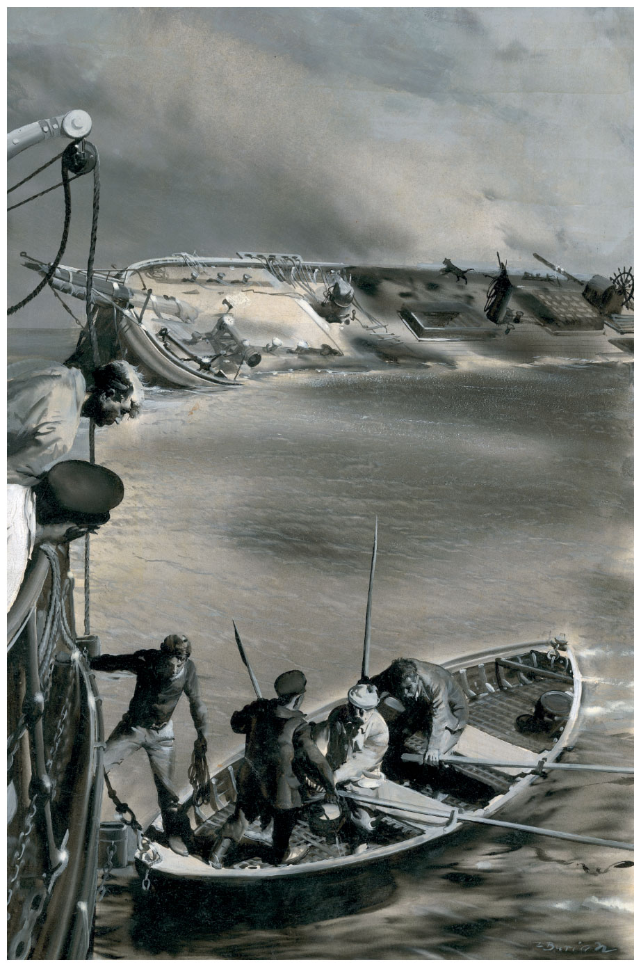 – Если люди и уцелели после столкновения, – сказал капитан Халл, – то, вероятнее всего, они погибли от жажды и голода: ведь камбуз залит водой. Должно быть, на борту судна остались одни трупы.