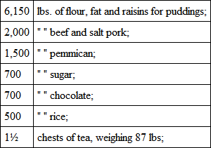 many barrels of canned fruits and vegetables, lime-juice in abundance, cochlearia, sorrel and water-cresses, and three hundred gallons of rum and brandy; in the hold there was a large supply of ammunition; there was plenty of coal and wood. The doctor collected carefully the nautical instruments, and he also found a Bunsen's Pile, which had been carried for electrical tests and experiments. In short, they had supplies enough to keep five men on whole rations for two years; all fear of starving or freezing to death was hence wholly removed.