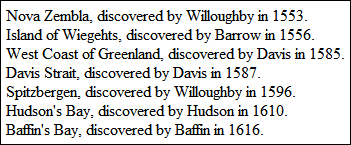 During recent years Hearne, Mackenzie, John Ross, Parry, Franklin, Richardson, Beechey, James Ross, Back, Dease, Simpson, Rae, Inglefield, Belcher, Austin, Kellet, Moore, MacClure, Kennedy, MacClintock, were incessantly exploring these unknown regions.