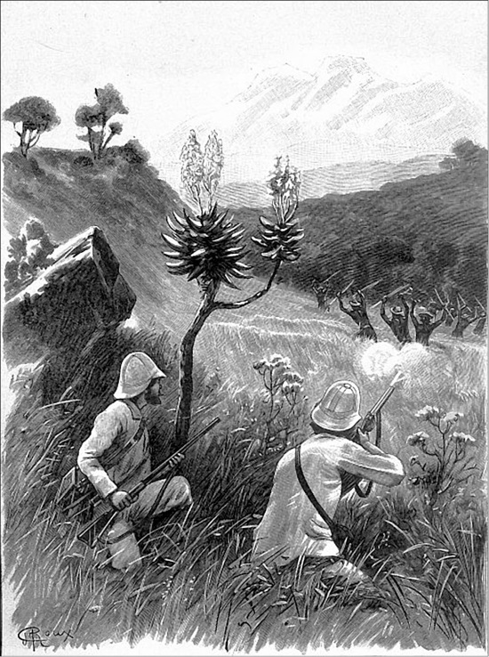 Оставив пирогу и багаж в Ла-Урбане, они отправились в путь. Жак Эллок взял с собой необходимые для наблюдения инструменты и великолепный автоматический карабин фирмы «Хаммерлес» с отражателем фирмы «Гринер», а Жермен Патерн – ящик натуралиста, карабин той же фирмы, не считая двух револьверов в кожаной портупее. Выйдя из Ла-Урбаны, молодые люди направились к тогда еще мало изученному массиву Сьерра-Матапей. Сопровождавшие их индейцы мапойе несли легкое походное снаряжение. За три недели они преодолели около трехсот километров и почти полностью выполнили программу экспедиции. Сделав фотографические и гидрографические съемки Суапуре – на юге и Рио-Тортуга (Рио-Шафанжон) – на севере, собрав растения, которые должны были пополнить их гербарий[79], они две недели назад двинулись в обратный путь.