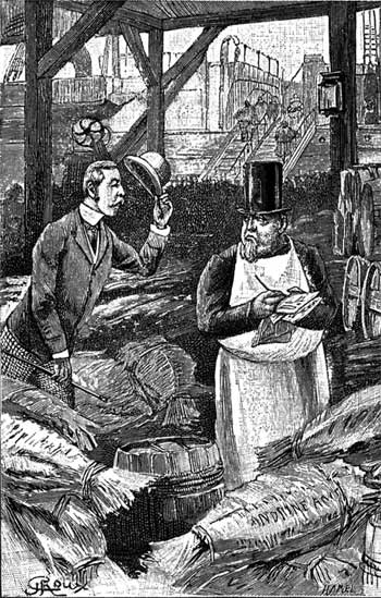 – Что касается меня, – сказал Дэн Тудринк, – дело было так: явившись в магазин на Хай-стрите, я застал там какого-то толстого господина в цилиндре, черном сюртуке и длинном белом переднике, закрывавшем его от подбородка до пяток. Отрекомендовавшись, я сказал ему, что пришел от имени майора Донеллана получить кое-какие сведения; на это последовал ответ, что сейчас только пришел из Нью-Фаундленда пароход «Южная звезда» с большим грузом свежей трески и что он может уступить мне большую партию в счет фирмы Ардринель и К°.