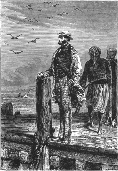 Man sieht, es fehlte Fix nicht an einer gewissen Dosis Narzissmus. Inzwischen wurde der Kai allmählich belebter. Seeleute verschiedener Nationalitäten, Handelsleute, Makler, Gepäckträger, Fellahs strömten zusammen. Die Ankunft des Paketbootes stand offenbar nahe bevor. Es war ziemlich schönes Wetter, aber infolge des Ostwindes herrschte eine kalte Brise. Über der Stadt erhoben sich im blassen Sonnenschein einige Minarette. Südwärts zog sich ein zwei Meilen langer Damm wie ein Arm vor der Reede von Suez. Auf der Fläche des Roten Meeres schaukelten einige Fischerbarken oder Küstenfahrzeuge, von denen manche in ihren Formen noch das elegante Muster der antiken Galeere bewahrt hatten. Mitten im Gewühl benahm sich Fix in der Art seines Berufes und fasste die Vorübergehenden mit raschem Blick ins Auge. Es war damals halb elf Uhr.