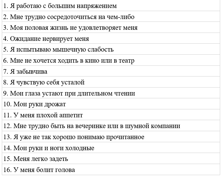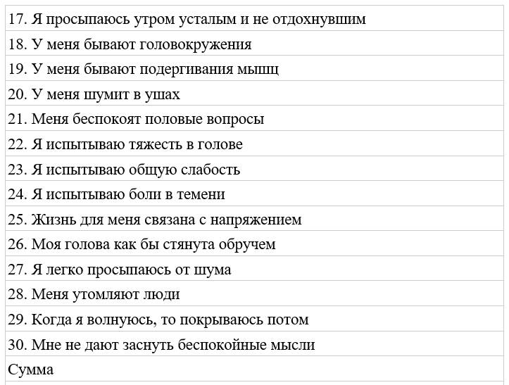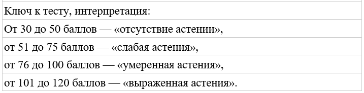 ТЕСТ-ОПРОСНИК ДЛЯ ДИАГНОСТИКИ АСТЕНИИ (ШКАЛА ШАС)
