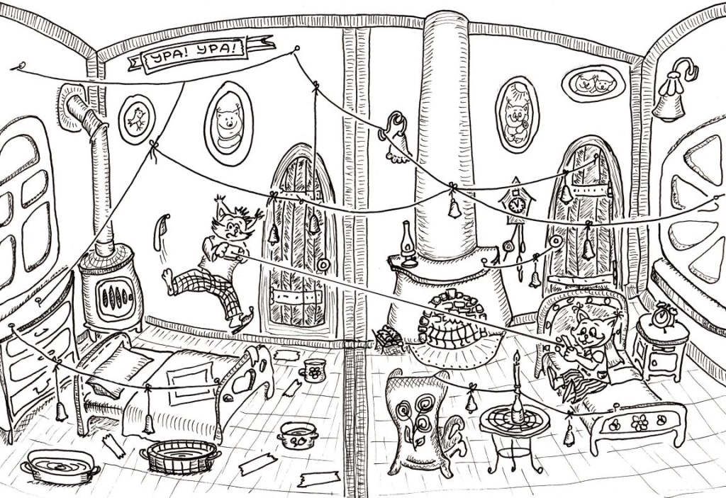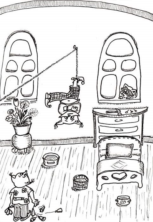 Тем временем Какангел взял моток ниток и побежал в свою комнату.