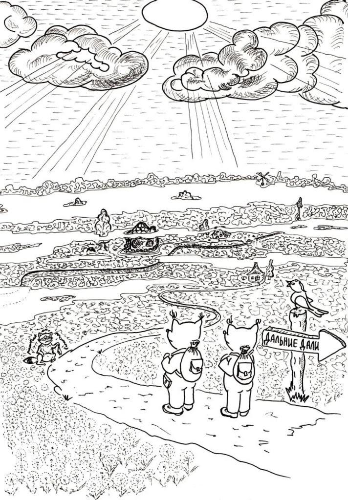 Когда через час ребята оглянулись назад, милый, любимый домик скрылся в голубой дымке. И только сейчас пушканы поняли, в какое серьёзное путешествие они отправились. Но нужно было спасать сны, и пушканы решительно зашагали вперёд.