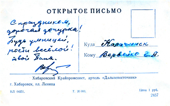 Новогодняя открытка из Хабаровска мне от папы. 1959