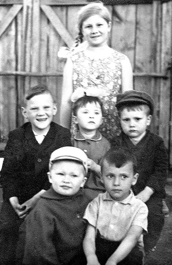 Внуки Вервейко А.Е. и М.А: Галя (стоит), Женя, Иринка, Вовочка, Романок и Вадик Шананин. Калачинск, 1 мая 1968