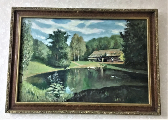 Наша квартира №2 была в первом подъезде, на первом этаже этого дома. В зале и на кухне были печки для обогрева (центрального отопления тогда не было). При входе был небольшой коридорчик. Справа – кухня. Слева – зал, за ним – смежная спальня, а в конце коридорчика, справа – умывальня. Остальные удобства были на улице – в общем деревянном туалете. Зал был свободный, в нём стояли диван, стол и телевизор, а в спальне – две кровати и письменный стол у окна (массивный, двухтумбовый, списанный в какой-то организации, но это было немыслимым счастьем для меня в те времена!) Над моей кроватью висел небольшой коврик: вышитый яркими цветными нитками мулине крестиком лыжник на тёмно-синем фоне, съезжающий с горы на лыжах, а впереди него бежал заяц, вдали стояли ёлочки среди снега. Это произведение мамы осталось в памяти, как символ моего детства: я очень его любила и всегда рассматривала, лёжа в кровати, перед сном.