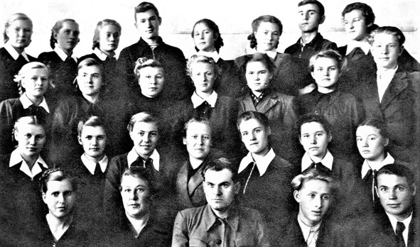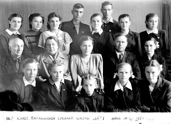 Классным руководителем в их классе была учительница математики Черненко Ефросинья Савельевна (она сидит в центре на выпускном июньском фото 10 «А» класса), завучем школы – всеми уважаемая учительница русского языка и литературы Ольга Александровна Тимофеева (сидит слева, вторая), которая тоже учила их класс. Учителем рисования был художник Сергей Карлович Гельвиг (сидит первый слева) – большой авторитет в Калачинске (уже в зрелом возрасте кто-то из одноклассников подарил маме его картину с пейзажем, которая украшала стену в нашей квартире).