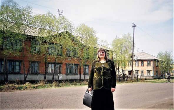Стою на улице Заводской на фоне своего дома, в котором жила наша семья с 1962 по 1974 годы. Калачинск, 2000. (Позже эти дома снесли).