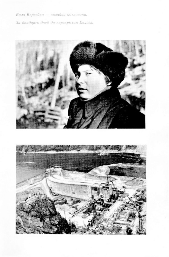 До декретного отпуска Валентина работала мастером участка, и однажды её большой красивый портрет с улыбкой, в телогрейке и шапке-ушанке, был напечатан на первой странице газеты «Правда». Вся наша многочисленная родня, конечно, очень гордилась этим событием. Позже вышла книга «Вечное стремление», где Юрий Скворцов написал о ней очерк «И вечный бой», назвав её хозяйкой котлована. И хоть она была скромной, часто заливалась краской от слов мужчин, но умела ими руководить, пользуясь авторитетом в коллективе за свои знания и умение общаться с людьми. Также в книге была помещена фотография Вали Вервейко, похожая на газетную. Вскоре Валентине стали присылать письма со всего Советского Союза, и даже – зарубежья. Иногда она доставала чемодан с ними, и мы начинали читать самые интересные. Писали люди разного возраста. Один пенсионер в каждом письме присылал стихи про Валю и её маленьких детишек. Но чаще писали молодые парни: из армии и мест заключения. Предлагали переписку или сразу же звали замуж. Она многим писала ответы (чтобы особенно не надеялись: она была уже замужем) и получала от них вторичные письма и поздравления. В одной из книг о Красноярском крае и строительстве этой ГЭС была помещена и фотография мужа Валентины – Василия Прокофьева, за работой геодезиста.