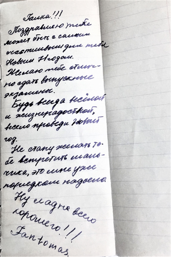 Вот так мы сгибали тетрадки и писали пожелания на развёрнутых листах