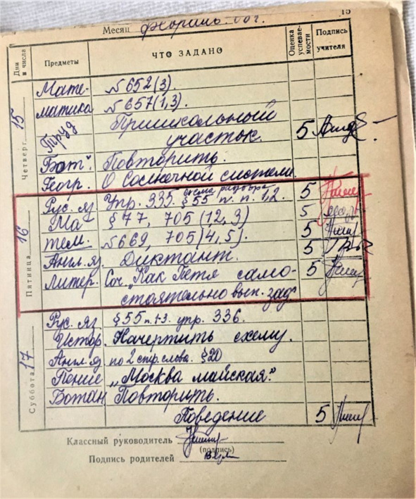 С этого случая «двойки» по поведению в нашем классе стали традицией. От этого частенько страдали наши дневники, которые мы либо уничтожали совсем, не оставляя следов, либо – ликвидировали страницу с «двойкой». А то и просто временно прятали подальше от глаз родителей. Я в это время жила у дедушки и частенько прятала дневник в больших кипах его газет…