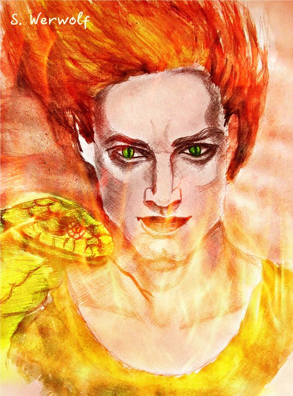В городах он предпочитает передвигаться в людском обличье: красивый, зрелый мужчина спортивного телосложения. Длинные каштановые волосы спадают по плечам на спину. Небрежно накинутая рубашка оголяет гладкую, без единого признака волосатости, рельефную грудь. Мускулистые руки с многочисленными шрамами выглядывают из под завёрнутых рукавов. Конфетка, а не мужчина. А какой от него исходит аромат. Самец, самец всем своим существом. Горячий, необъезженный. И голос под стать: волнующий кровь шёпот, бархатные нотки, навевающие порочные фантазии.