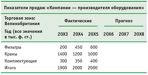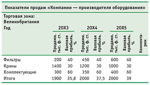 В таблице 2.2 показано, как можно представить цифры для «Компании – производителя оборудования» с целью их использования в маркетинговом плане для Великобритании.