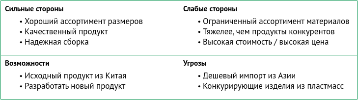 Теперь на примере собственного плана выполните SWOT-анализ в том же формате: