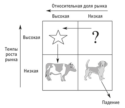 «Дойные коровы» – зрелые продукты с высокой долей рынка, но низким рыночным ростом. Они приносят высокую прибыль, и, чтобы удержаться на занятых позициях, им нужен лишь небольшой объем маркетинговых инвестиций; при этом затрат на исследования и разработки не требуется совсем.