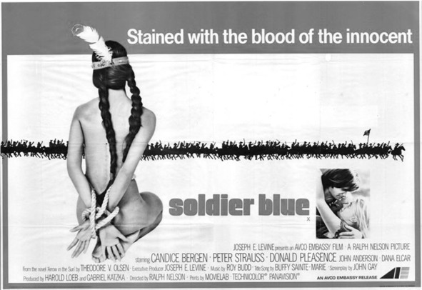 В то время мы жили в Индии, в Дели, в городке при советском посольстве. Время от времени отец брал меня на фильмы, куда дети не допускались. Так я попал на фильм «Soldier Blue», обозначенный буквой «А», то есть «Adults» (для взрослых). На всю жизнь я запомнил гигантскую афишу возле кинотеатра «Chanakya» – на белом фоне сидит на коленях спиной к нам голая женщина, руки связаны за спиной, длинные чёрные косы спускаются вдоль тела, а через всё полотно горизонтальной линией, как причудливая арабская вязь, тянется непрерывная цепочка синих всадников. Позже мне попадались разные вариации этой афиши, и на всех была индейская девушка со связанными за спиной руками.