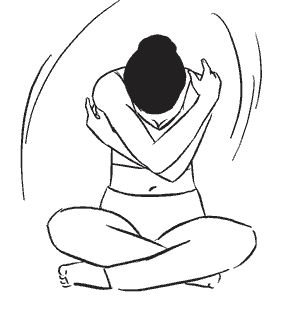 Наклоняя голову вниз и максимально округляя спину, одновременно опустите руки через стороны и, скрещивая их перед грудью, обхватите себя за плечи.