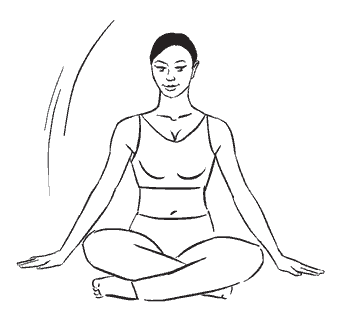 Сядьте прямо, ноги согнуты в коленях и скрещены перед собой. Левая рука согнута в локтевом суставе и ладонью и предплечьем прижата к полу. Правая рука вытянута вверх, ладонь внутренней стороной направлена влево.