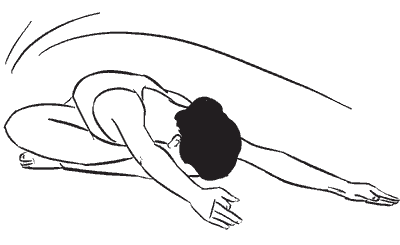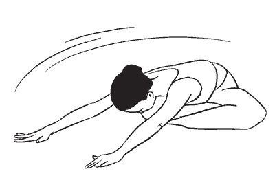Выдохните и опустите копчик вниз, подавая лобковую кость вперед. Посмотрите на рисунок: туловище полностью округлено и расслаблено.
