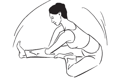 Голова, шея и спина должны составлять одну прямую линию, колено выпрямленной ноги не сгибать. Чтобы усилить растягивающий эффект, максимально оттягивайте носок стопы на себя.