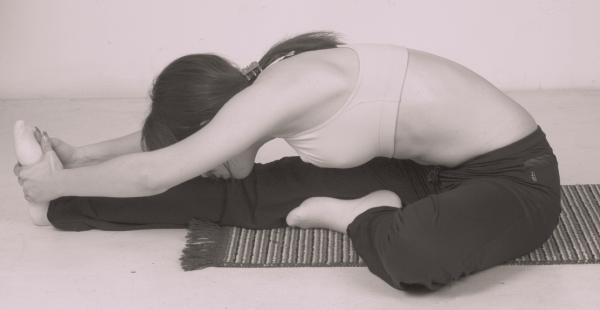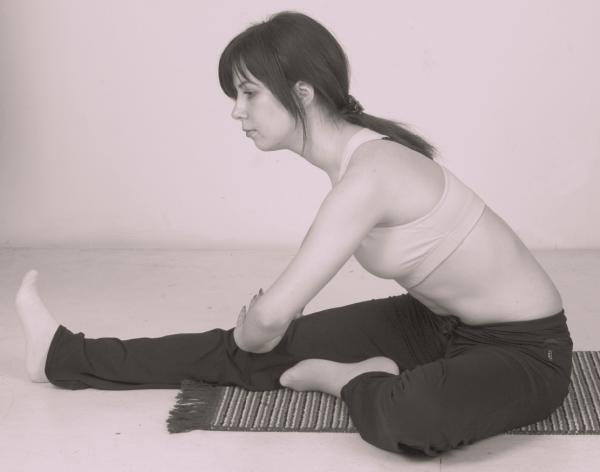 Внимание! Голова, шея и спина должны составлять одну прямую линию, колено выпрямленной ноги не сгибать. Чтобы усилить растягивающий эффект, максимально оттягивайте носок стопы на себя.