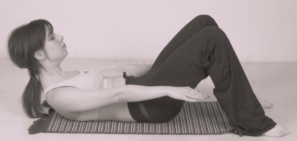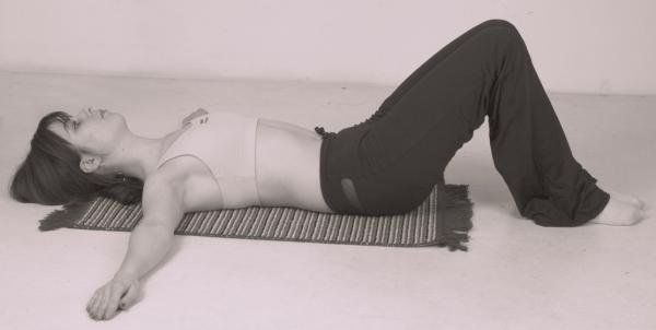 Лежа на спине, подбородок параллелен полу, ноги согнуты в коленях, стопы на ширине бедер, параллельны и плотно прижаты к полу, руки свободно расположены вдоль туловища.