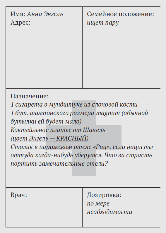 Сегодня у меня должна закончиться бумага. Пока мне дали еврейскую книжку рецептурных бланков, а со временем подыщут что-нибудь более приемлемое. Я раньше и не знала, что такие бланки вообще существуют. Наверху значится имя врача, Бенджамин Зильберберг, а внизу – желтая шестиконечная звезда и предупреждение, что по закону еврейский доктор имеет право выписывать лекарства только своим соплеменникам. Предположительно, Зильберберг больше не практикует (предположительно, его отправили в концлагерь), вот почему книжка оказалась в руках гестапо.
