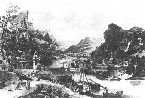 На Рейне. Акватинта Г.-И. Шютца. Начало 19 в.