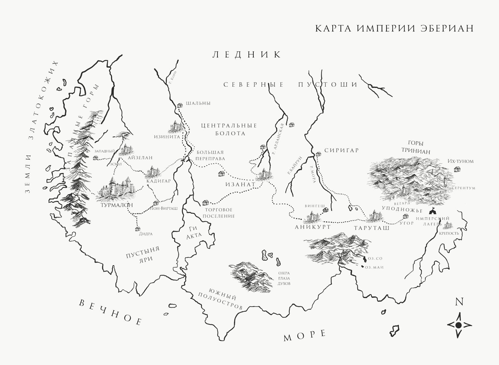 Когда-то я сама впервые проехала по этому пути. Несколько лет назад мы с Лунартом и Аяком стояли на вершине и смотрели на маленькое поселение, ставшее ныне крупным городом. Теперь на этом месте установили каменную арку с двумя башнями. В будущем я планировала заложить стену, которая протянется с севера на юг, а далее, возможно, и на запад, отгораживая подъезд к Айзелану как от каганарта Бивир Куров, расположенного восточнее, так и от Турмалона. Хотя иногда этот проект казался мне излишеством: я явно страдала легкой формой паранойи, боясь пришествия непонятного врага.