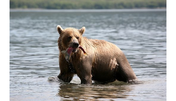 Как только мимо него пыталась проплыть крупная рыба, он стремительным взмахом передней лапы выхватывал её из воды и, не глядя, бросал на берег.