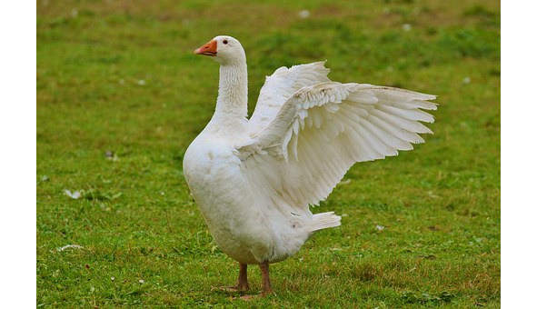 Вдруг сзади Чика раздались громкие хлопки. От неожиданности Чик испугался. Обернувшись, он увидел большую белую птицу. Она похлопала крыльями, а затем, выгнув длинную шею, важно зашагала по каким-то своим делам.