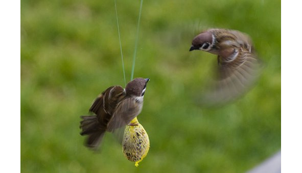 А в это время в другом конце двора разгорелся птичий переполох. Это ссорились воробьи.