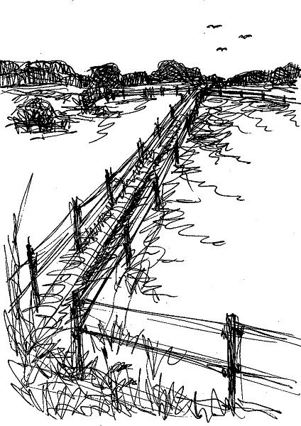 Die Fahrt ging durchs Oderbruch, einer großen Ebene, eintönig mit Schnee bedeckt. Am Horizont sah man ab und zu ein paar einzelne Gehöfte, ansonsten fuhr man auf schnurgerader Straße Richtung Osten. Nach zehn Minuten endlich eine Siedlung: Kienitz wurde ausgeschildert, rechts abbiegen.