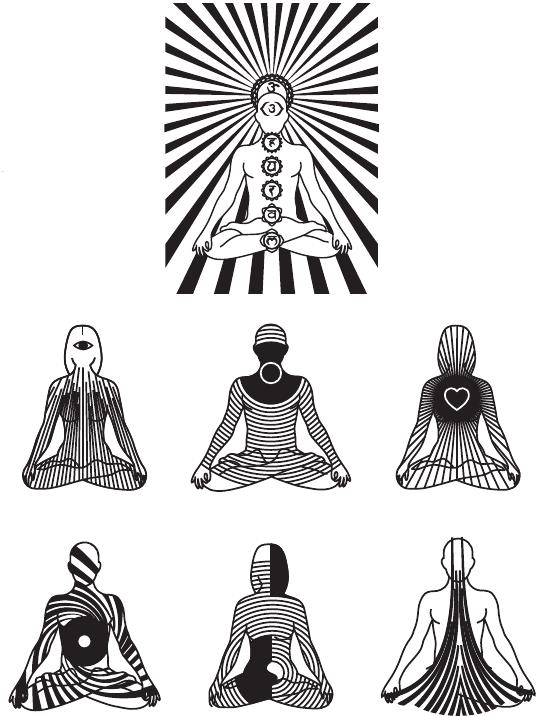 От главного энергетического канала, словно корни лотоса, ответвляются боковые каналы, которые открываются конусообразно на поверхности тел ауры. Их называют чакрами, или энергетическими центрами. Они напоминают склады – в каждом хранится свойственная именно этой чакре энергия. Вся эта энергетика находится в постоянном движении. Чакры впитывают в себя универсальную энергию, разлагают её компоненты и затем направляют по энергетическим каналам в нервную систему, в железы внутренней секреции и в кровь, чтобы питать тело.