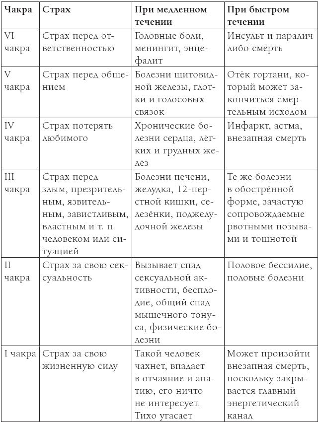 У каждого органа есть сознание. Когда пропадает воля, то орган отказывается работать. В зависимости от природы страха он поражает разные чакры и разные органы.