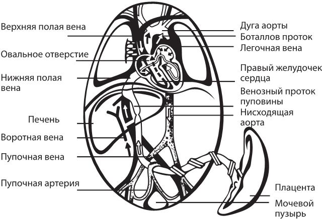 Жизнь плода в чреве матери отличается от жизни уже рождённого ребёнка. Кровообращение у плода происходит соответственно – кровь плода циркулирует в сердце прямо через овальное отверстие, расположенное в перегородке между предсердиями, поскольку лёгкие у плода не дышат. Когда ребёнок рождается и начинает дышать, лёгкие раскрываются, и кровь начинает течь через них, чтобы обогатиться кислородом. Раньше это делала своими лёгкими мать. В тот же миг овальное отверстие закрывается. На это уходят считанные минуты.