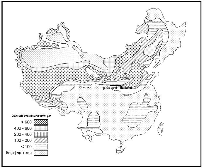 Рис. 2.3. Районы Китая с избытком и нехваткой водных ресурсов. Составлено на основе [Fang, Yoda 1990]. Картограф: Дон Санетра, Gamut Graphics