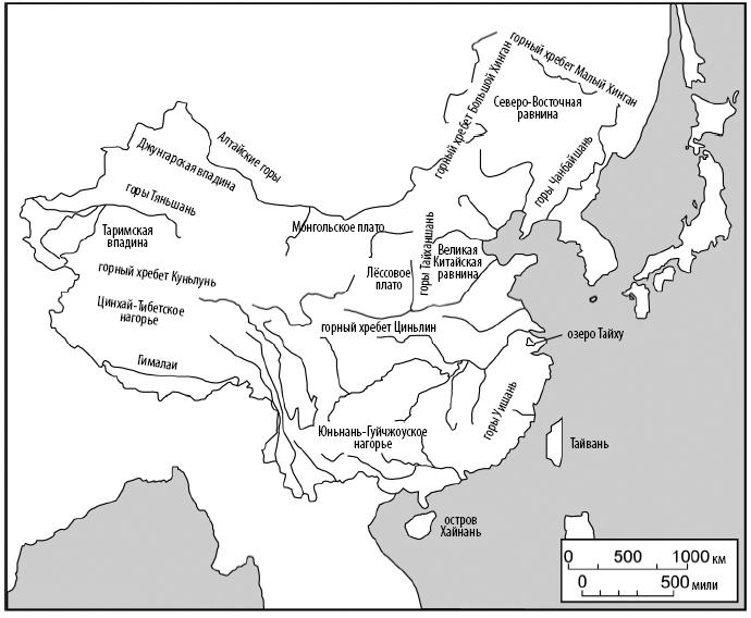 Как и в любой крупной стране, эволюция ландшафта в Китае – сложный процесс, в результате которого мы имеем огромное разнообразие рельефа. В контексте теории дрейфа континентов мы можем сказать, что тектоническое строение Поднебесной сформировалось под воздействием большого сдвига на восток и юг Евразийской плиты и столкновений последней с продвигающейся на запад Тихоокеанской плитой. Кроме того, Юго-Западный Китай контактирует с Индийской (Индостанской) плитой, которая постоянно движется на север, продвигаясь под Евразийскую плиту и стабильно приподнимая Гималаи примерно на 1 см в год. Описанные процессы продолжаются по настоящее время. Рельефы, формирующиеся в результате соприкосновений и столкновений гигантских плит, – так называемая геотектоническая структурная платформа Китая – формируют основные поверхностные черты многообразных ландшафтов современного Китая, а также генерируют множество землетрясений и цунами, которые постоянно происходят в Китае и сопредельных странах. Средняя высота самых крупных горных систем Китая, в том числе Куньлунь и Гималаи, составляет более 6500 метров над уровнем моря. Такие вершины обнаруживаются на крайнем западе Китая. Высота снижается примерно до 5000 метров над уровнем моря на восточной стороне Тибетского нагорья и по мере продвижения на востоке достигает уровня моря близ побережья Желтого моря. Спуск на восток с Тибетского нагорья к восточному побережью Китая очень напоминает нисхождение по гигантской лестнице в три громадные ступени. Каждая из этих «ступенек» имеет, естественно, свое название: (1) Цинхай-Тибет-ское нагорье[5], (2) Центральные горы и нагорья и (3) Восточные низменности. Иными словами, весь Китай можно разделить на три макрорегиона, которые позволяют нам сопоставлять не только их физико-географические параметры, но и экономические и культурные факторы, которые возникают в соответствующих ландшафтах и условиях.