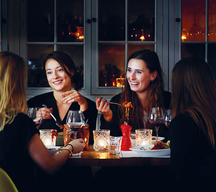 Ешьте не торопясь. В обеденный перерыв посидите за столом с друзьями, семьей или коллегами, насладитесь вкусом еды и общением в хорошей компании.