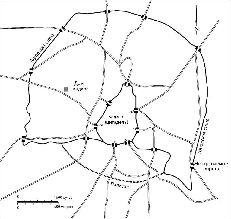 Вдобавок фиванцы были весьма обеспокоены тем, что масса македонской пехоты за стенами могла атаковать, чтобы вызволить своих соратников, запертых в городской цитадели – знаменитой Кадмее. В отличие от большинства акрополей (например, афинского), которые располагались в центре окруженных стенами полисов (городов-государств), укрепления Кадмеи с одной стороны непосредственно примыкали к общей городской стене. Таким образом, в отличие от средневековых крепостей, знаменитая цитадель Фив частично находилась прямо на передовой линии осады.
